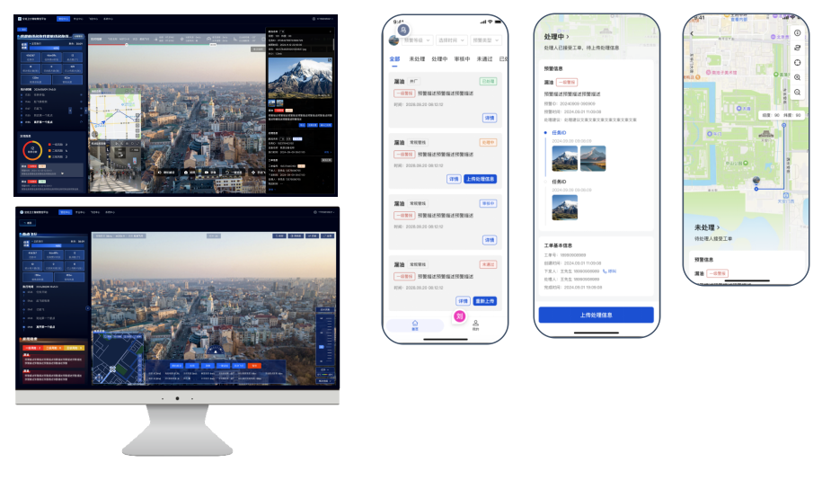 结合 AI 识别技术,平台能够对采集到的大量数据进行实时分析和处理,风险隐患等级分类一图概览,一键下发工单至工作人员手机,工作人员通过APP即可接收工单、处理工单,极大简化风险处理流程,增强了对突发情况的即时响应能力。