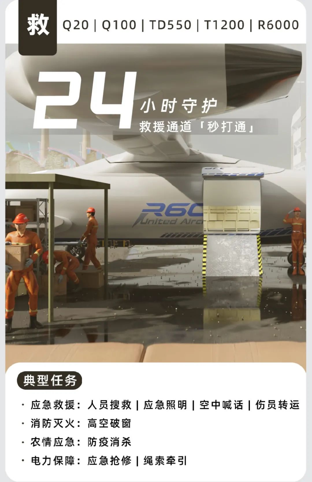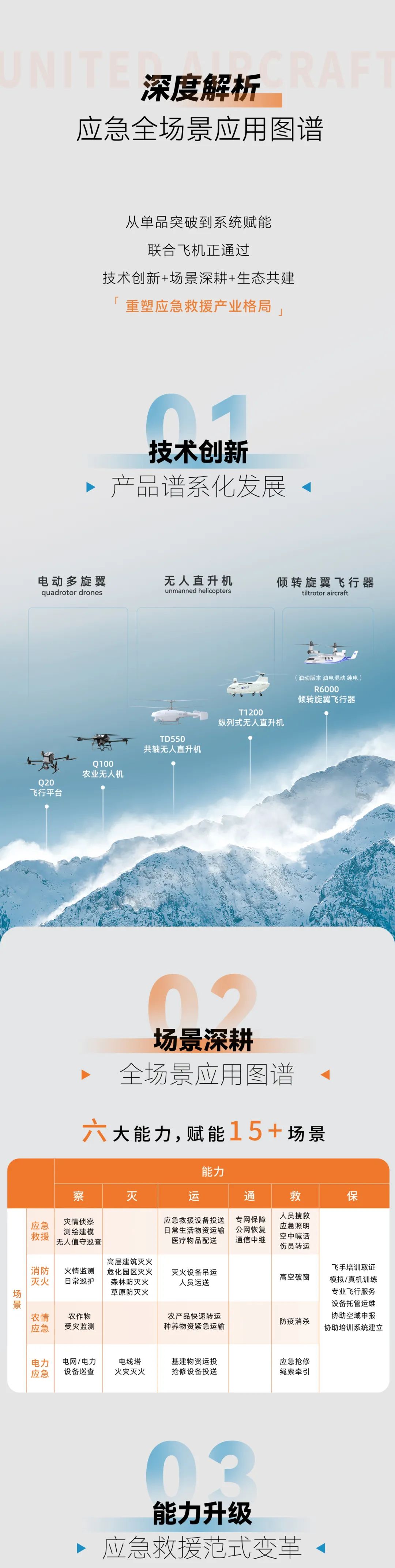 精准把握应急救援实际需求,前瞻性战略布局引领方向,联合飞机持续推陈出新,接连推出新技术与新产品,成功填补众多应用场景下的技术空白。