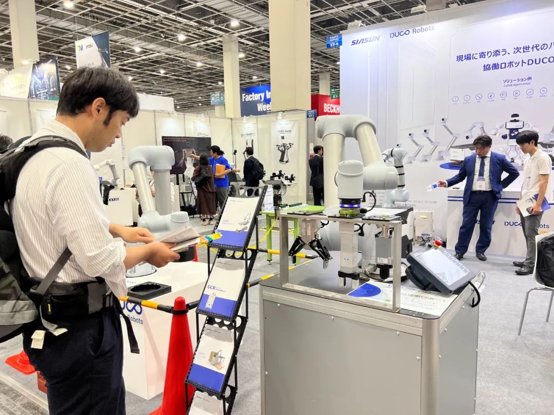 新松多可机器人(展位号Hall 6,K9-6)携20kg大负载协作机器人、10kg协作机器人及移动协作机器人参展,展示了智能搬运、自动夹具快换以及大负载高速移动定位等应用。