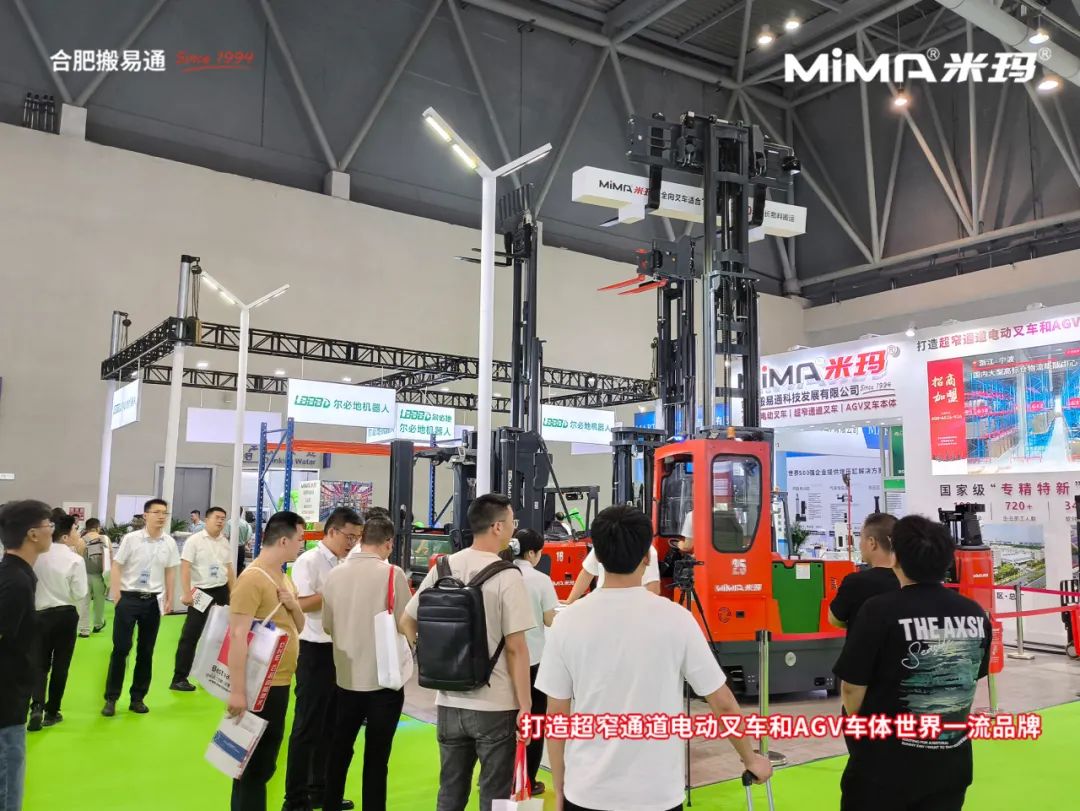 本次展会上,合肥搬易通(MiMA 米玛)展出的丰富产品线极具吸引力,涵盖了MiMA全系列物料搬运设备、超窄通道仓储、全系列无人AGV车体多个品类,MiMA展位人气爆棚,获得了众多参观者的关注。