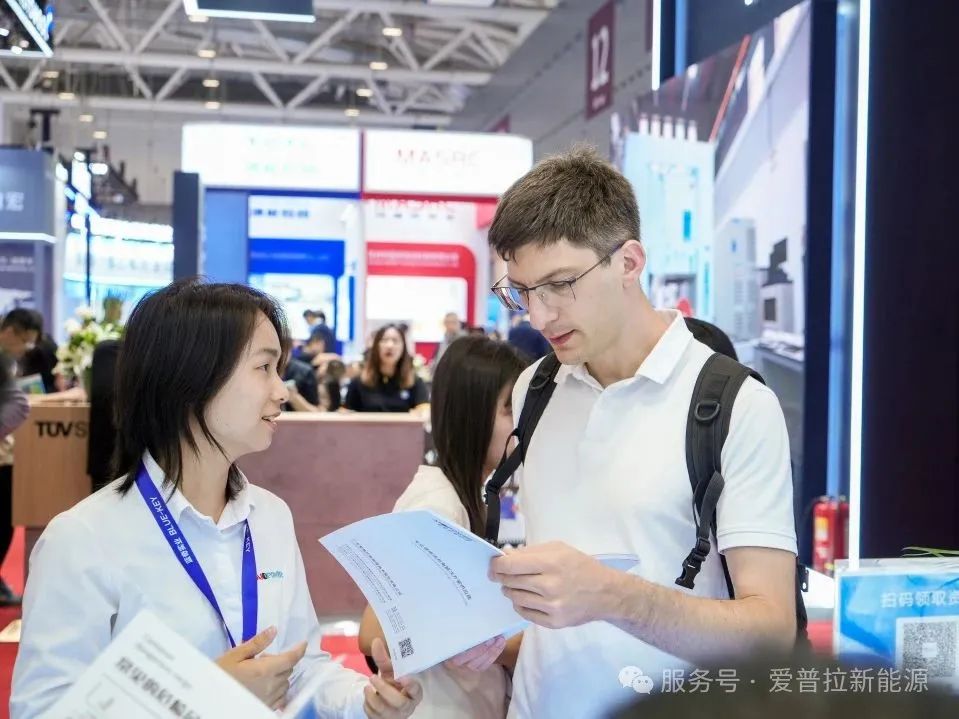 展会现场,工作人员凭借丰富的专业知识为来访客户提供从技术参数解读到商业场景落地的全周期咨询服务,详细解答客户疑问,全方位展示爱普拉新能源的技术实力、创新能力和服务优势,为双方后续的合作奠定了坚实基础。