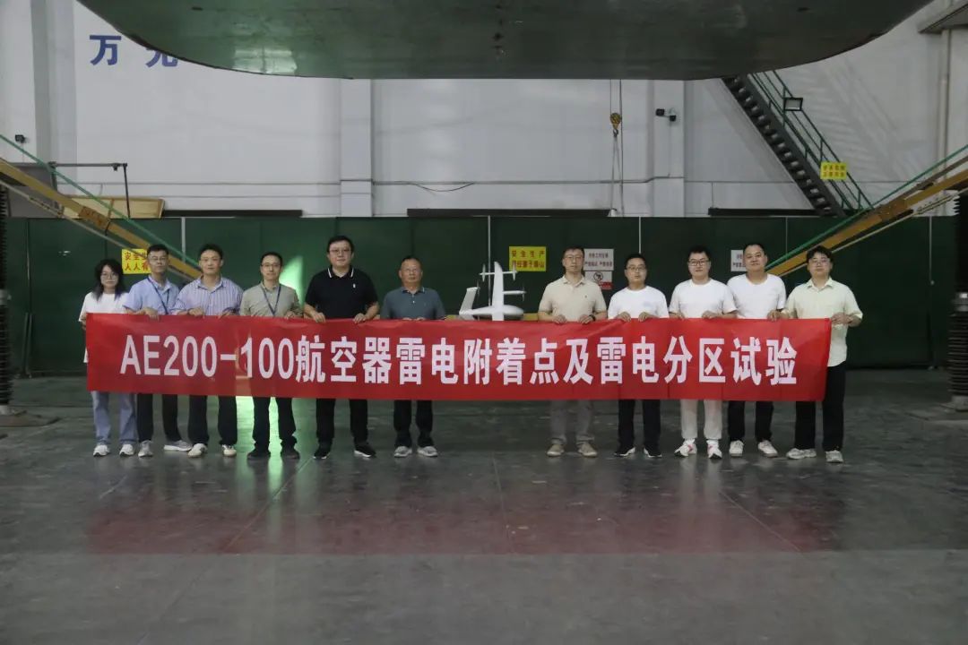 本次试验目的在于验证AE200全机闪电防护设计的安全性。针对AE200典型飞行剖面,在航空器悬停、倾转、巡飞等不同飞行阶段的航空器俯仰、倾转和偏航等数十个姿态开展千余次放电试验,以测试AE200闪电与静电防护性能的安全可靠性。该试验是适航取证中的关键测试。