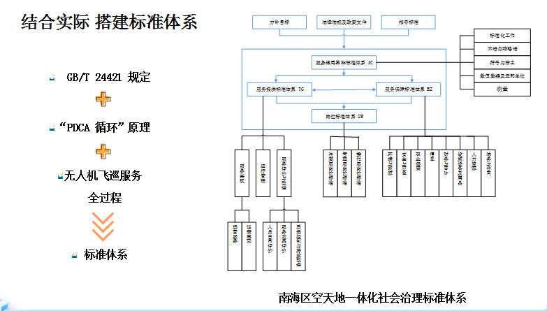 空天地一体化社会治理标准化项目于2023年6月成功入选广东省标准化试点。自入选以来,历经近两年的精心组织、深入调研、反复优化,南海区政务和数据局最终梳理出107项标准,其中64项为自主制定,占比近六成,展现出南海在社会治理标准化建设上的创新实力。