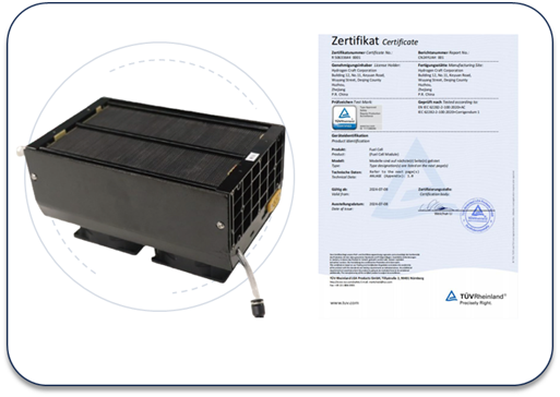 氢航科技氢燃料电池是全球首个德国莱茵IEC安全认证的空冷型氢燃料电池,已应用于FC30氢电版运载无人机、大疆M350氢电版无人机、氢电版系留照明无人机、氢旋4号等核心产品,在实际飞行项目中均取得优秀成绩。2024年珠海航展上,氢航科技67kW氢燃料电池阵列助力航空工业直升机所一架400公斤氢燃料电池动力无人机载荷80公斤飞行1小时;今年5月,氢航科技M350氢电版无人机中标1000万元采购订单,深受市场信赖。