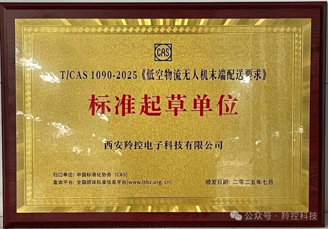 近日,羚控科技正式荣获 T/CAS 1090-2025《低空物流无人机末端配送要求》“标准起草单位” 。这一殊荣不仅是对羚控科技在低空物流无人机领域专业实力的高度认可,更彰显了公司在行业标准建设中的重要地位。