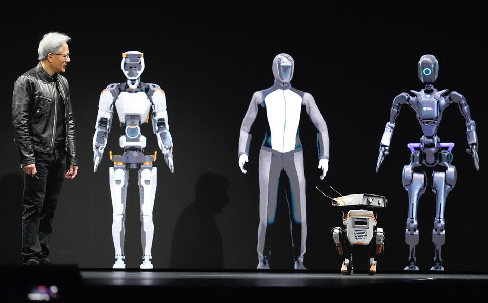 Nvidia 首席执行官黄仁勋与机器人 (图片:美联社)