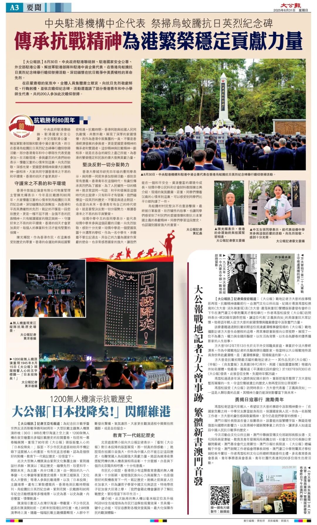 来源:《大公报》8月31日A3版/《香港文汇要闻》8月31日A6版
