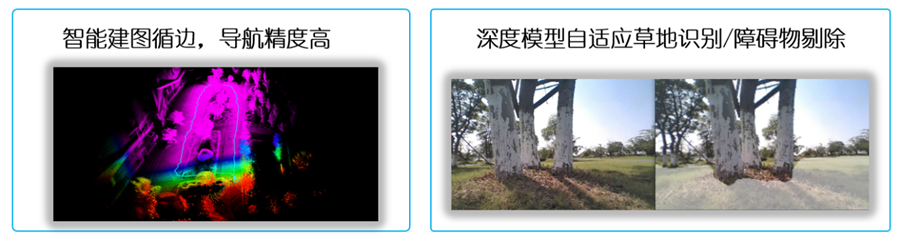 •结合语义SLAM技术,通过深度学习算法实时分割环境中可通行草坪与需规避区域(如花坛、沙坑、石头等),支持边界自学习与最优路径规划,减少漏割与重复覆盖,提升作业效率。