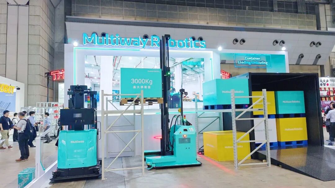 劢微机器人在东6号馆6-111展位展示多款创新无人叉车产品,开展首日便吸引大批专业观众驻足交流,现场气氛热烈。