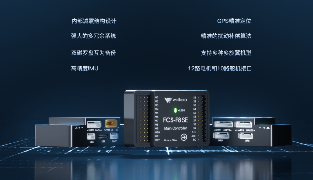 FCS-F8 SE在硬件层面实现关键突破,解决教培无人机飞控常见的机型适配受限和容易出现故障的问题,为教学稳定运行提供保障。