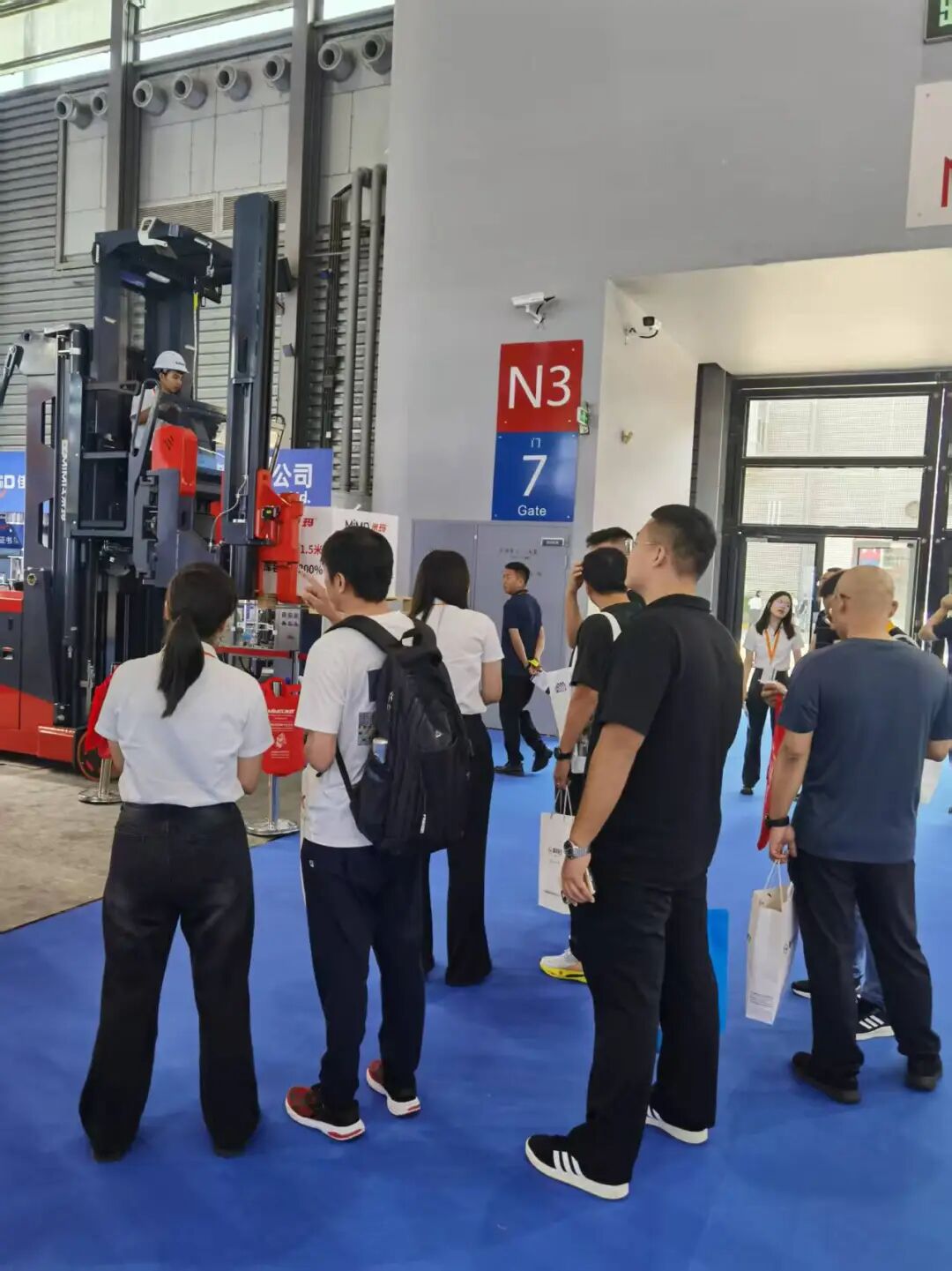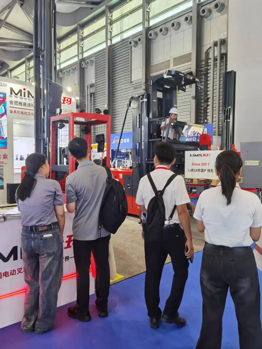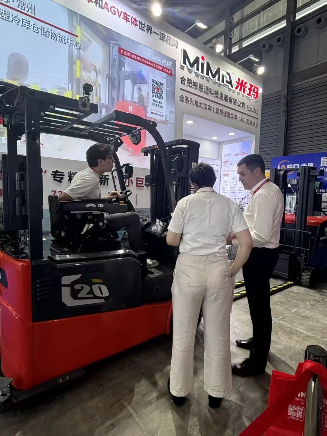 现场技术人员通过实际操作演示,向观众展示MiMA设备在窄通道内的灵活性和精准性。不少客户对MiMA的产品表现出浓厚兴趣,尤其关注超窄通道叉车在橡胶行业的具体应用。