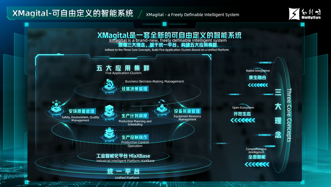 作为和利时深耕数智化转型的核心成果,XMagital可自由定义智能系统遵循“原生融合、开放生态、全面智能”三大核心理念,基于统一技术平台,实现生产控制操作、生产计划调度、设备资产管理、安环质量管理、经营决策管理五大应用集群的自由定义与灵活配置。该系统的核心价值在于打破传统工业领域“自动化与信息化割裂”、“系统绑定式合作”的行业痛点:一方面,通过大数据、工业大模型、AI技术的深度融合,重构工业生产全场景智能应用,释放效率倍增价值;另一方面,支持企业按需定制、灵活部署,助力用户快速响应业务升级需求,真正构建起 “技术 - 产品 - 生态” 三位一体的AI落地能力,为工业企业打造“未来核心竞争力”提供技术底座。