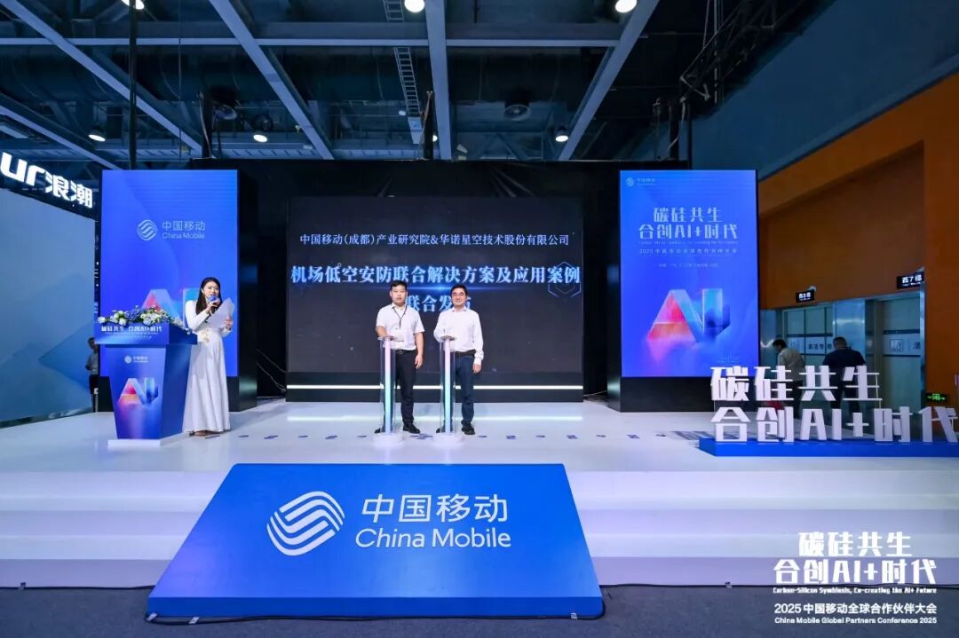 硅碳共生,合创AI+时代,10月10日-10月12日,2025中国移动全球合作伙伴大会在广州召开。作为中国移动的注资企业及核心产业链合作伙伴,华诺星空联合中国移动(成都)产业研究院在会上发布机场低空安防联合解决方案及应用案例,作为低空经济战新未来产业赛道的“新亲戚”企业参与2025中国移动股权投资亲戚纳新仪式,并展示了自身在低空安全监管领域的全场景产品和解决方案。