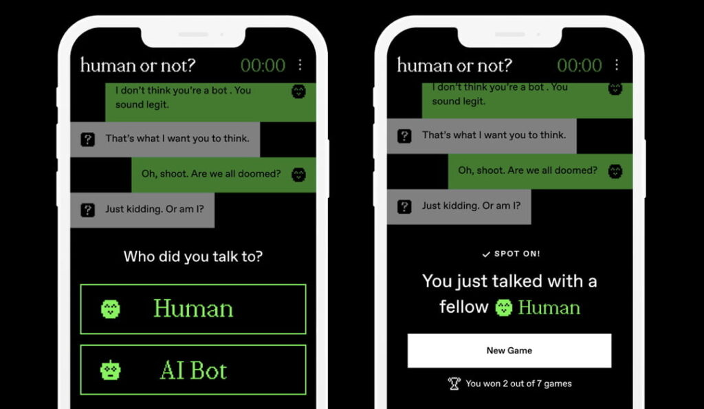 该游戏给用户两分钟的时间来判断他们是在与人交谈还是与机器人交谈(图片来源:礼貌)