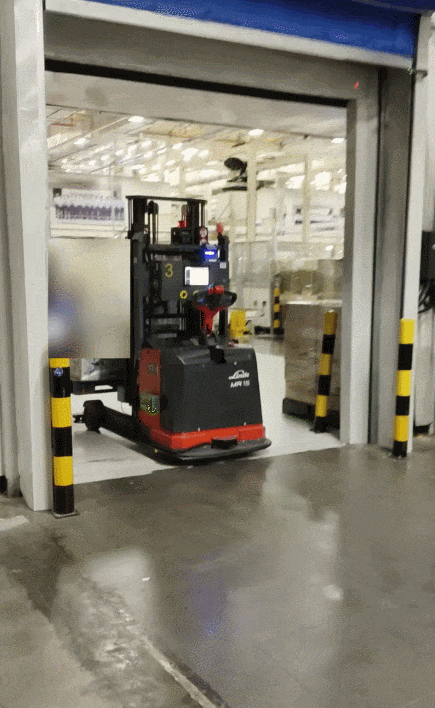 此外,众仓机器人打通了叉式AMR与现场多点位卷帘门、防火门等自动化设备协同控制,实现整片区域交通管制,优化整场作业逻辑,显著提升项目作业环境的安全系数。