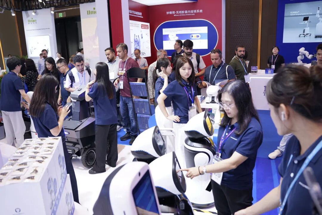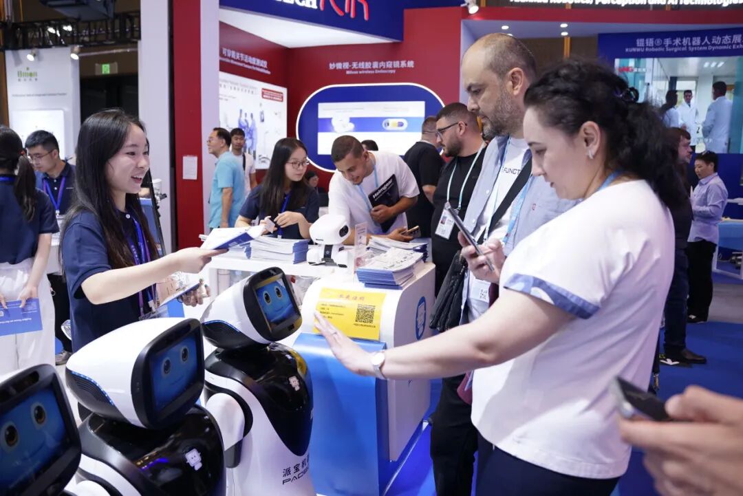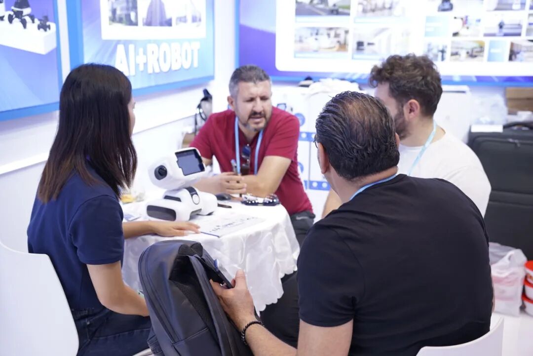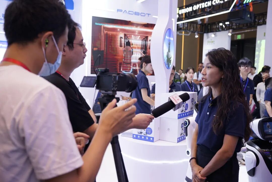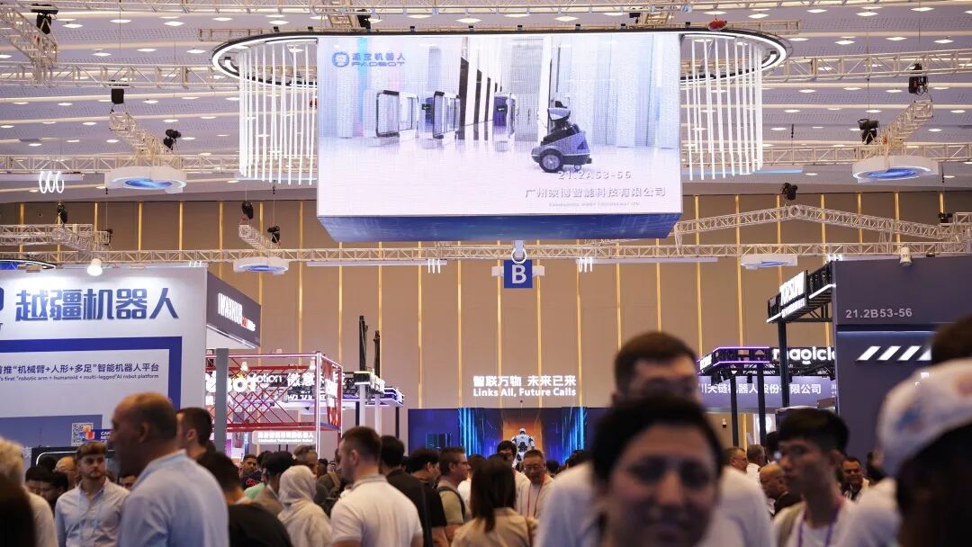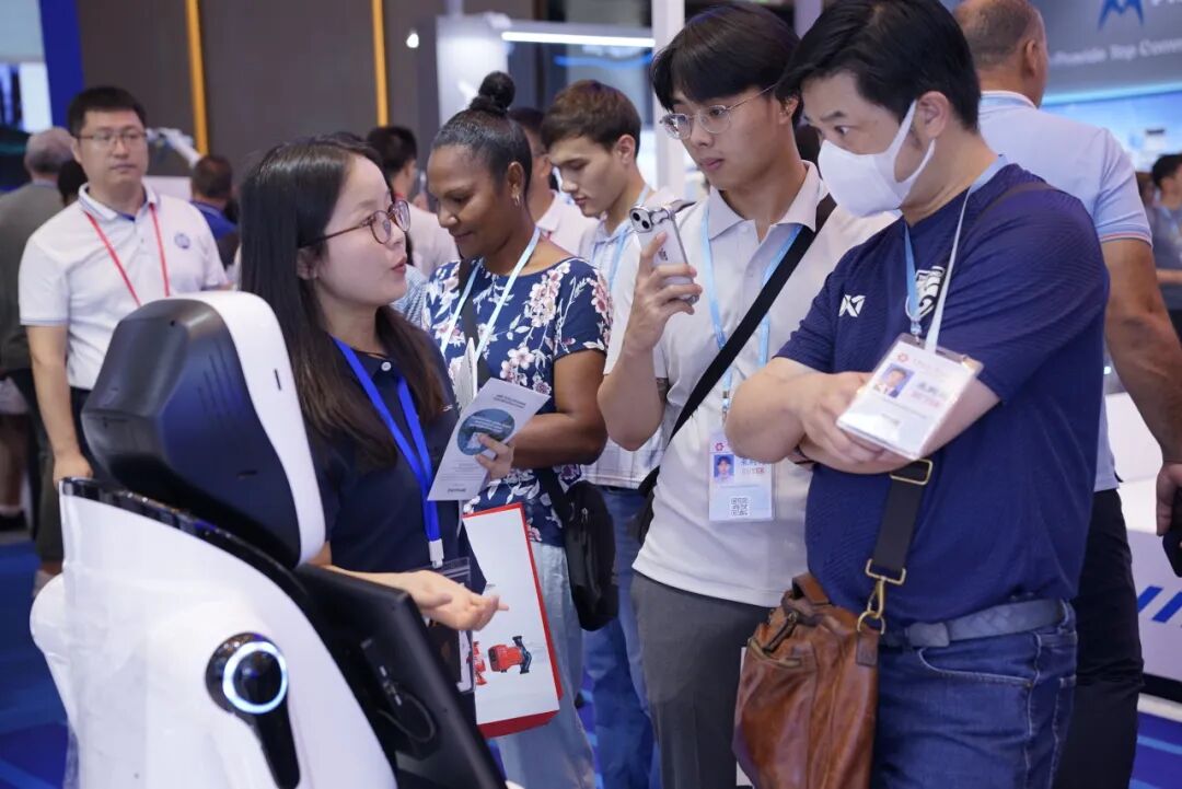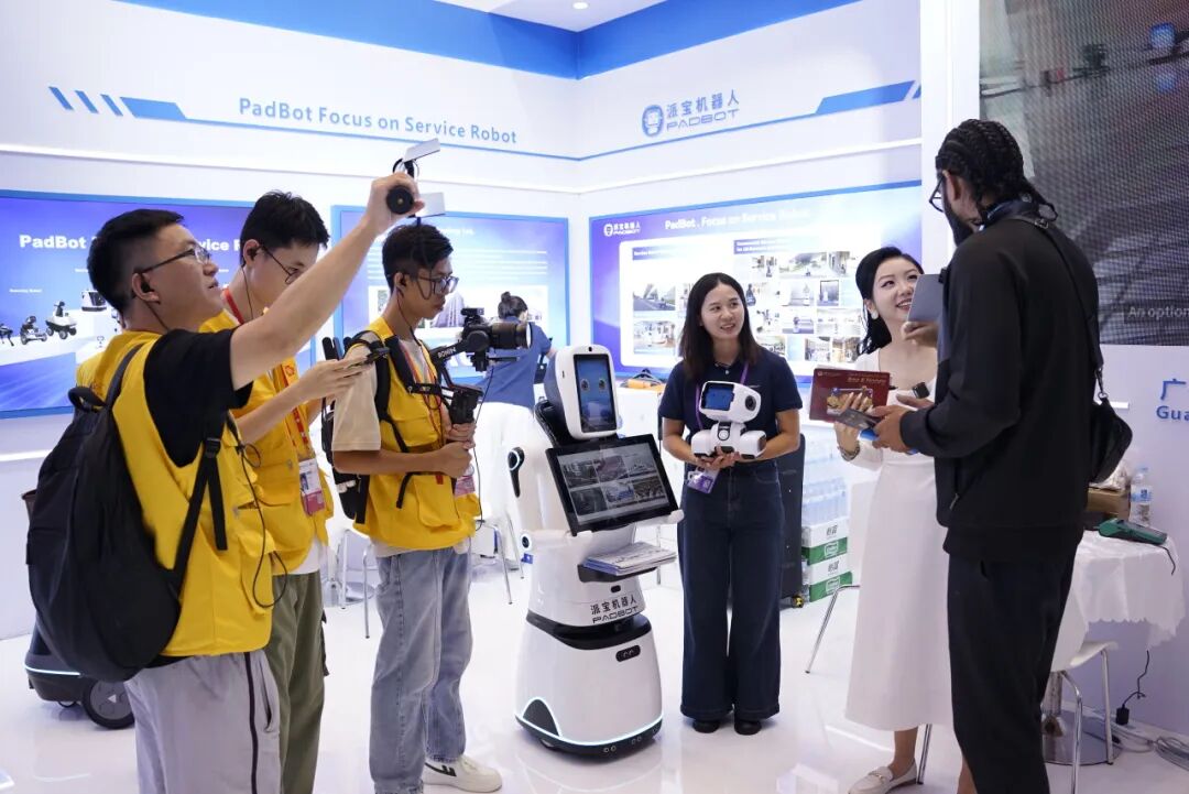 海外客商纷纷驻足体验、深入交流派宝机器人产品。其中,接入 AI 大语言模型的迎宾机器人 X3,能以多语种流畅应答各类采购咨询,其精准的个性化交互能力赢得不少外商由衷称赞;由室内外巡逻机器人组成的无人巡逻场景,通过 AI 识别算法、大面积无轨自主导航、双端远程操控等功能的现场演示,直观呈现出商用场景下 “降本增效” 的优质解决方案。
