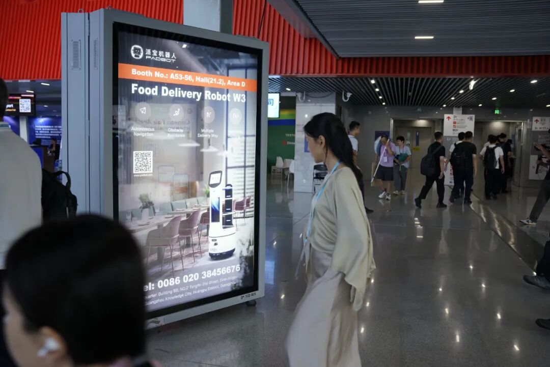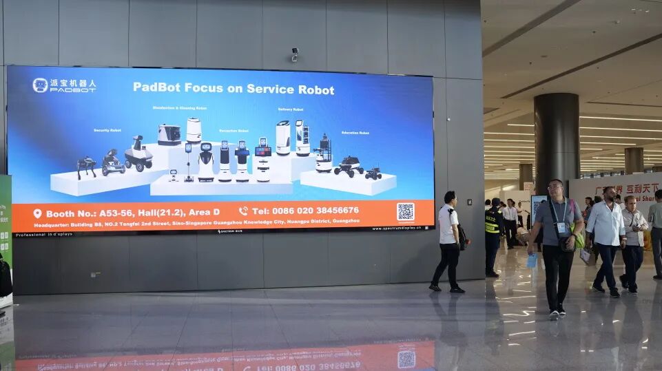 展会期间,派宝机器人的品牌形象同步登陆广交会公交枢纽户外广告、中央平台 LED 屏、登陆大厅广告屏、滚动灯箱等数个核心广告位,全方位呈现产品矩阵的全球落地版图,让 “派宝机器人” 的品牌印记深入每一位参会者心中。