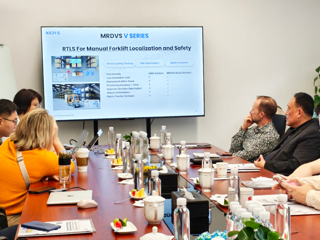 期间,双方举行了技术研讨会,重点探讨了视觉感知技术在移动机器人领域的创新应用。迈尔微视详细介绍了其3D视觉技术,特别是LiDAR+Camera融合方案在具身智能机器人环境交互、无人机自主避障、清洁机器人场景识别等核心感知环节的突破性应用,代表团对技术的前沿性和实用价值给予了高度评价。