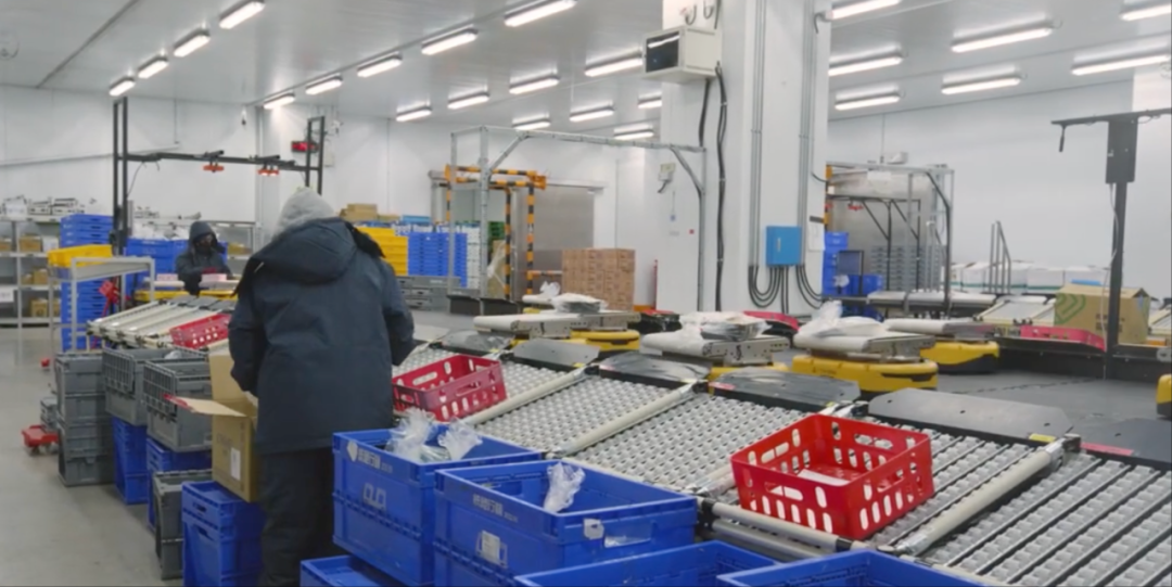 放在以前,这样的深夜低温仓,是分拣员们最煎熬的战场。作为大型零售连锁的物流枢纽,这里要处理成千上万种 SKU—— 从常温的饮料零食,到必须全程低温保鲜的冷冻食材,补货节奏快,促销季和节假日的订单更是堆成小山。分拣员们得裹着厚厚的防寒服,低温里一站就是数小时,双手戴着厚手套,既要精准作业,又要体力搬运,重复无数次动作。