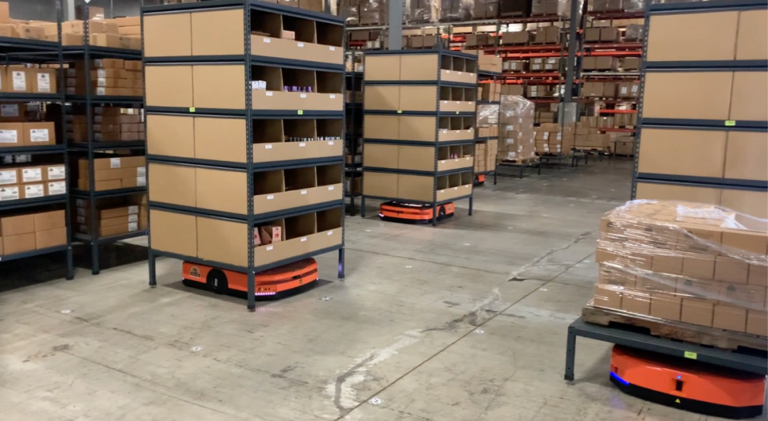 美国天然护肤品牌OKAY Pure Naturals引入快仓“货到人”自动化方案,在2000平米仓内部署20台AGV机器人。