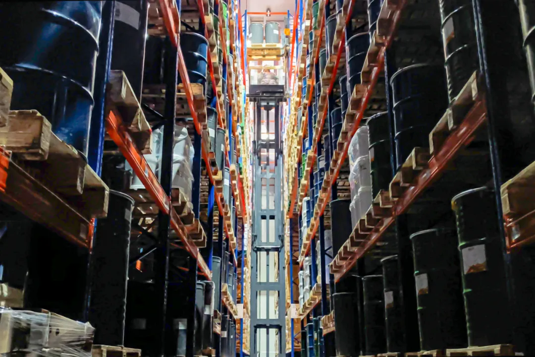 经卓一全面改造后的冷库专用人上型三向叉车,车身和门架都做了防锈处理、对液压油、齿轮油、电磁阀等液压系统进行了专业级别的防冻处理,能够有效应对冷链仓储物流行业面临的库容不足、叉车液压系统冻结、行驶过程中打滑等痛点,在最低-25℃环境中依然可以稳定运行,助力客户实现更高存储密度、更安全高效的冷链物流。