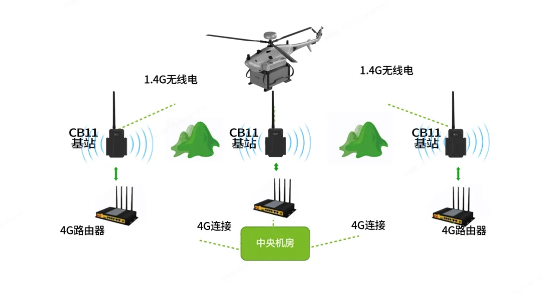 传统方案受限于单点通讯距离,一旦飞行器飞离基站覆盖范围,便会陷入“失联”风险,作业安全与数据实时性无从谈起。紫燕科技给出的答案是:化“单点”为“网络”,为海上平台群量身打造专属的“空中局域网”。