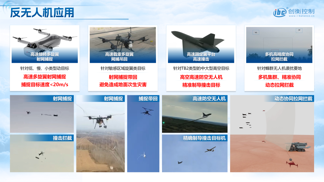 创衡控制基于在无人机导航、制导与控制领域的深厚积累,开展反制无人机控制系统关键技术研究,在射网捕捉、网捕带回、固定翼撞击、多机拉网拦截等方面形成系列化产品及丰富场景应用。