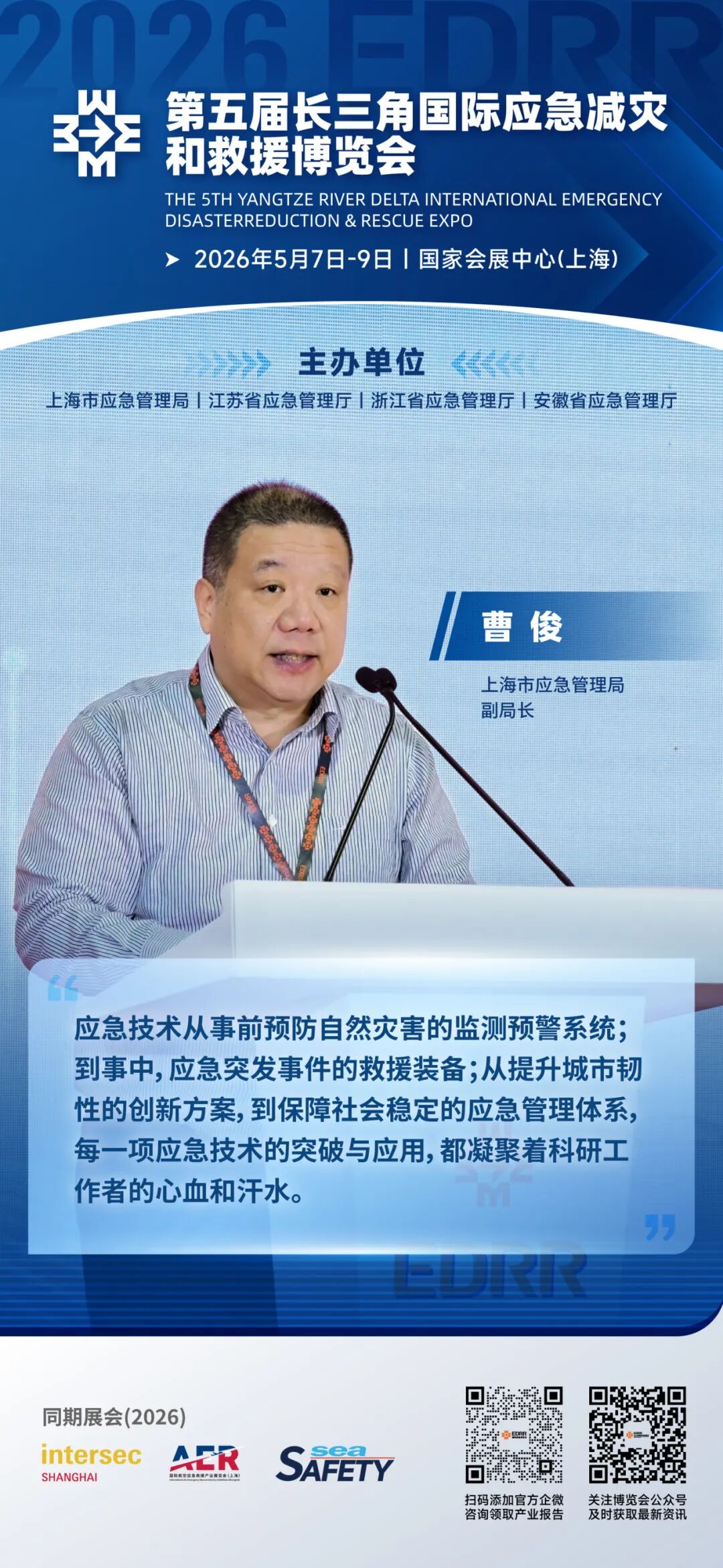 在此背景下,作为长三角一体化应急管理协同发展的核心载体与风向标之一,EDRR第五届长三角国际应急减灾和救援博览会将于2026年5月7日至9日在国家会展中心(上海)隆重举办。