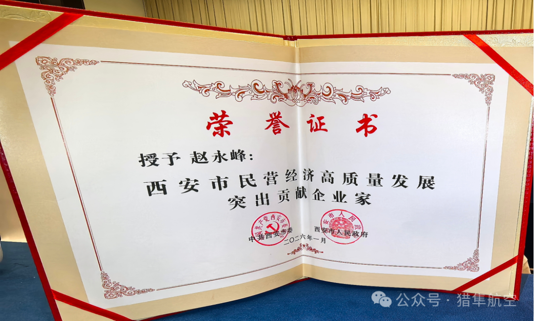 1月16日,西安市召开民营经济高质量发展突出贡献奖表彰大会,对在推动西安市经济社会发展中作出突出贡献的优秀民营企业和杰出企业家进行了表彰。猎隼航空董事长赵永峰荣膺“西安市民营经济高质量发展突出贡献企业家”称号。这不仅是对赵永峰董事长个人成就的高度认可,更是对猎隼航空在民营经济浪潮中勇立潮头、砥砺前行的充分肯定。