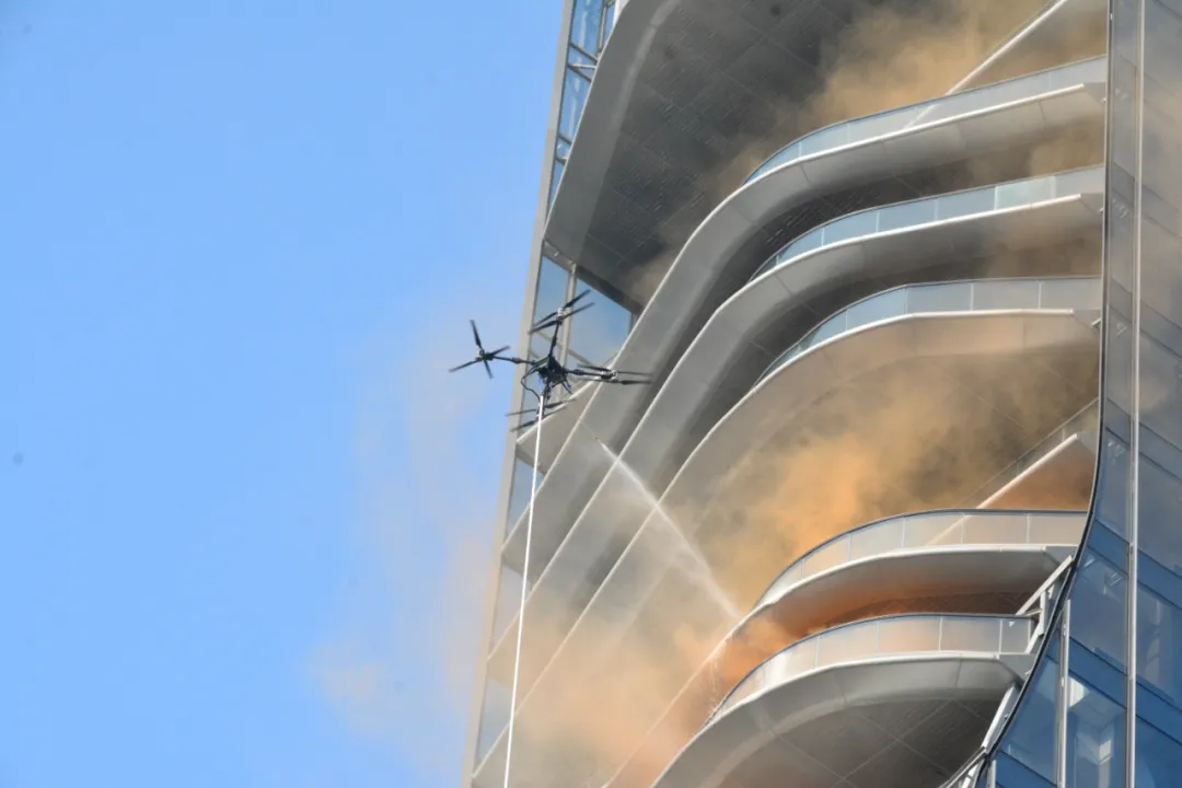 可为高楼火灾中的被困人员投送全面罩、呼吸器等重型防护装备,或为持续作战的前线消防队伍运载水带、破拆工具等补给。