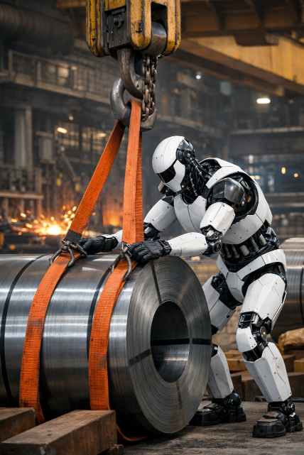 根据公开报道,本次PoC将聚焦钢厂成品钢卷的装卸物流环节。浦项方面计划让人形机器人与现场人员协同作业,在卸载过程中完成将起重机吊装带固定到大型钢制品上的关键动作;相关钢卷单卷重量被披露为20—40吨量级,该环节事故风险较高,也容易造成作业人员肌肉骨骼劳损,导入机器人的核心目标之一就是降低伤害风险并提升作业可持续性。