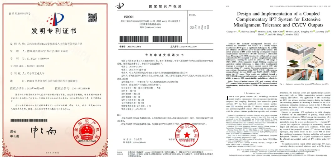 整体来看,该系统在效率、适配性与环境可靠性之间形成了较为均衡且实用的技术组合,而不是单一指标的极端堆叠。团队在无线电能传输及无人系统交叉领域已形成持续性的技术积累,有多篇相关专利布局、论文成果,并且本成果已通过第三方CMA认证,有较高的工程化能力与技术成熟度。