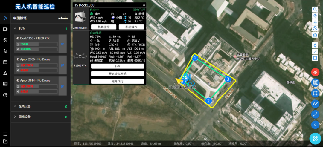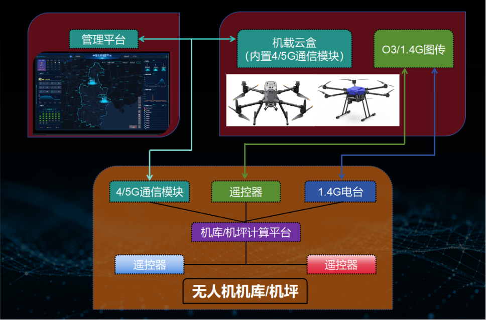 在实际运行过程中,系统可接入低空智联管理云平台,对无人机电量状态、飞行姿态、实时位置及飞行路径进行远程监控与可视化调度,使设备层能力进一步延伸至数据管理与任务统筹层面,形成“补能—飞行—监控—再补能”的闭环“蛙跳”运行体系。