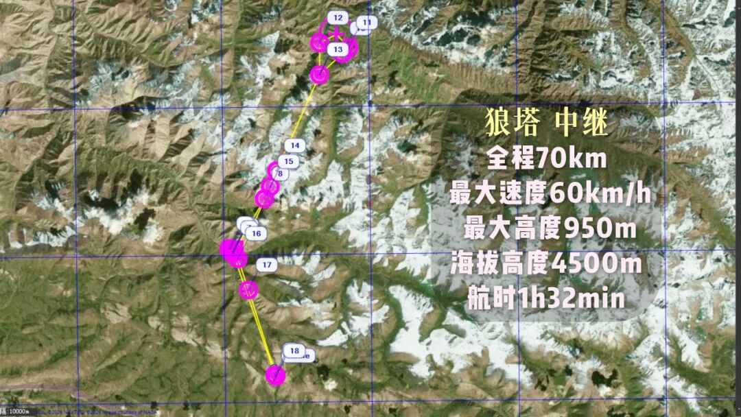 中继机承担通信保障重任,全程飞行70公里,最大速度60公里/小时,在海拔4500米高度持续飞行1小时32分钟。任务机则执行物资投送任务,飞行85公里,最大速度达80公里/小时,在海拔4400米高度飞行1小时40分钟。