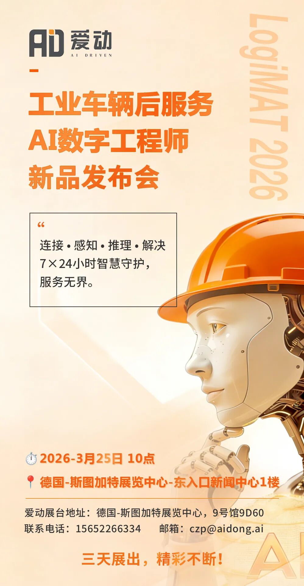 除了工业车辆后服务 · AI数字工程师全球首发,爱动超越展位还准备了三天沉浸式活动,从深度演示到技术分享,全程干货满满,邀你共赴行业盛宴!