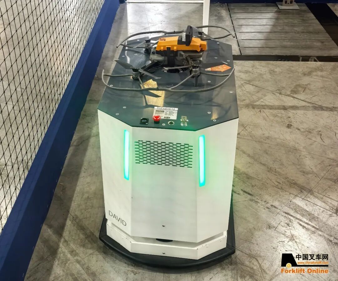 Adah International(阿达国际)展出的DAVID仓储盘点自主移动机器人(AMR)同样引人注目。该设备采用系留无人机与AGV相结合的设计,支持二维码/条码扫描及数字孪生建模,系留设计可实现长达5小时的持续飞行,单次可覆盖2500个托盘货位,有效解决了高位货架人工盘点的效率与安全痛点。