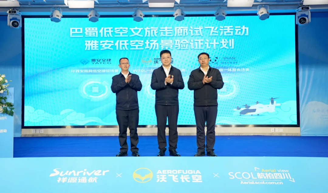活动当天,雅安交建集团、雅安文旅集团与沃飞长空联合发布《雅安市低空文旅场景验证计划》。雅安交建集团是雅安交通基础设施建设的主力军,雅安文旅集团是雅安市文旅产业的核心国有运营平台,沃飞长空则代表着国内eVTOL的领先力量。三方的携手,将针对行业痛点系统破局,在低空基础设施建设、文旅服务、eVTOL技术与运营 保障方面通力合作,构建雅安低空文旅全链条发展体系。
