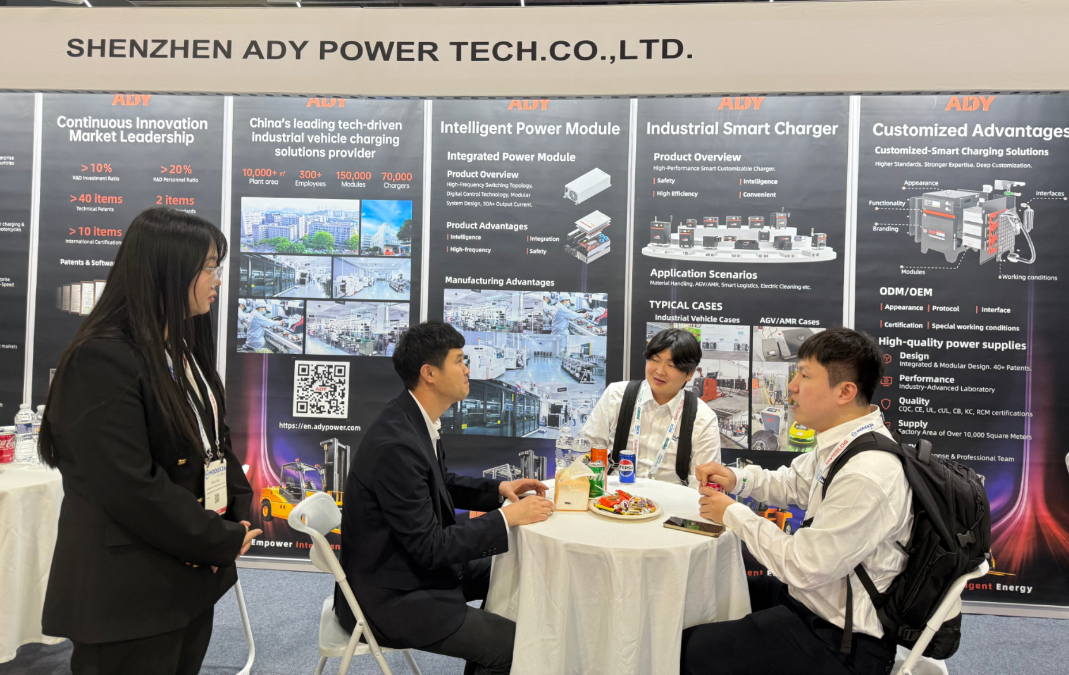 安德普围绕“智能电源模块、智能充电机、AGV/AMR专用充电机“,构建了三位一体的产品体系,全面满足从电动叉车、牵引车到各类移动机器人的充电需求。