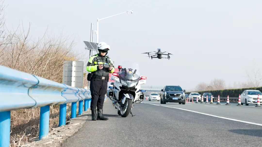 交管无人机执法系统以警用摩托车为移动指挥平台,搭载智能无人机及执法APP,构建“空陆一体”立体化执法网络,建立全新的1分钟响应、3分钟抵达、5分钟处置的“135”快速反应警务机制。通过AI算法,系统可对违法变道、违停、违法使用电子设备等9类行为进行自动识别、预警和取证;针对简易事故,无人机能快速取证并自动上传平台,一键将警情派发至周边3-5公里内警力,同步疏导交通,打造“云端哨兵+地面尖兵”的现代交通治理新模式。