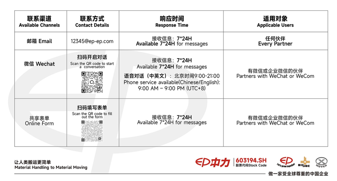 1、邮箱:12345@ep-ep.com(7×24小时接收信息,适用于任何伙伴)