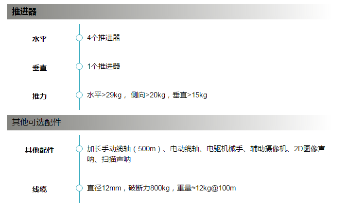“江豚IV”是一款基于江豚系列基础,全新开发的缆控水下机器人。该系统配备1个垂直推进器和4个水平推进器,4个水平推进器矢量排布。相比于上代产品整套系统更加紧凑、具有更强的动力,并具有强大扩展性能。