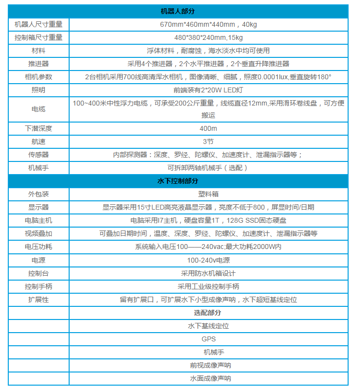 产品可用于船舶检查、人员搜救、海洋生态修复、科研教育、水下采样、海底探测、水下作业、刑事侦测、海洋学、河流和海洋的搜索,大坝检查、石油和天然气平台的工作,水产养殖和国土安全行动等各个领域。