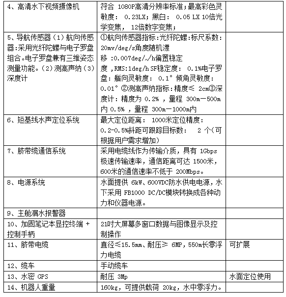 4、配备光纤陀螺和电子罗盘的组合航向传感器,保证各种复杂水下环境中,精确的定向航行功能。