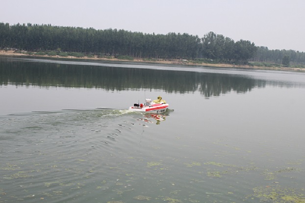 4、船体在螺旋桨和舵机的驱动下航行时,船体平稳,速度可自由灵活掌控,转弯灵活。结合无线遥控视频传输设备可进行超视距操作,时刻观察船体周围环境以备有突发情况时指挥人员进行及时的判断和采取措施。