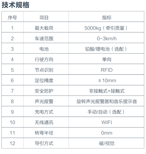 尾部牵引式搬运产品利用小车尾部的牵引装置拖挂货架,通过视觉识别或者磁条导引将货物运输至指定地点,从而实现物料无人运输。此种车型特点是灵活,尾部的牵引装置设计简单,方便与物料载具进行对接与放置。