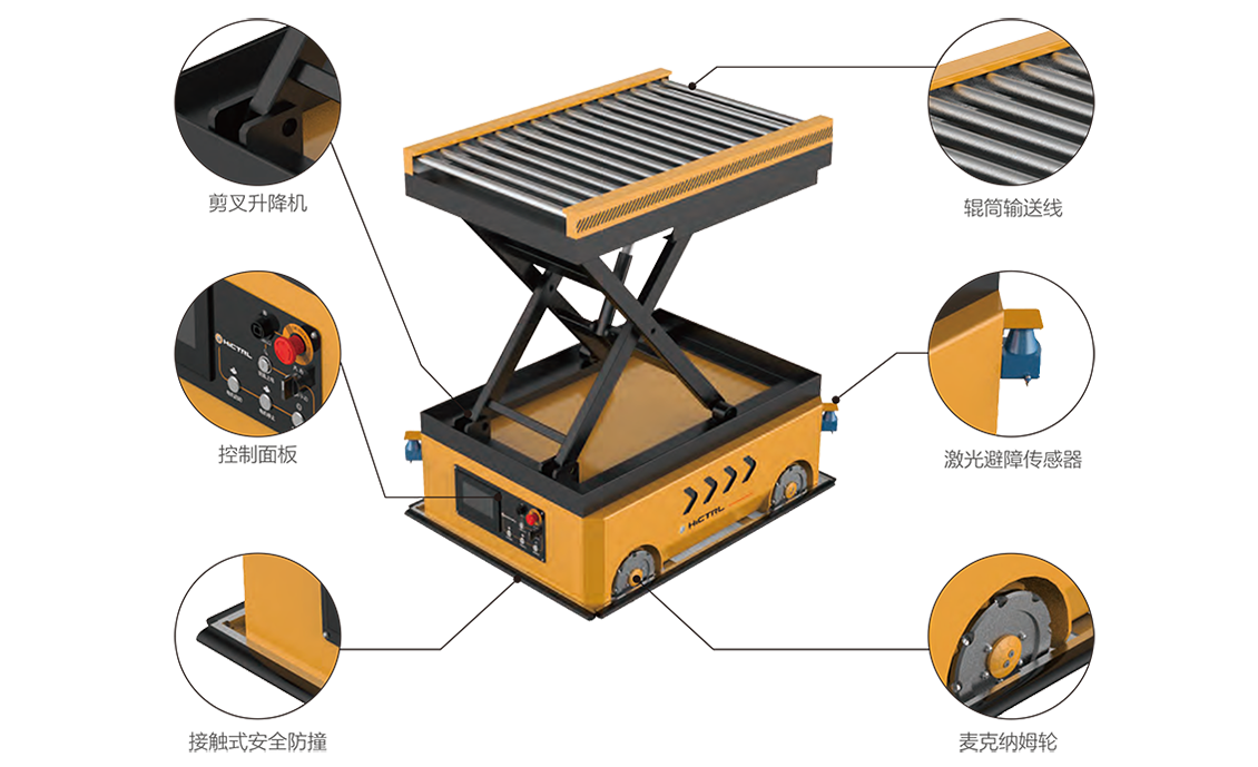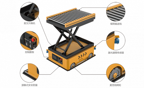 最新研发的辊筒运载机器人,配备麦克纳姆轮技术,搭载自动导航系统、无线遥控等功能,能在狭小的空间与辊筒输送线对接,完成柔性化的物料输送。可实现多种物料形式输送,如托盘式物料、纸箱类物料、料框式物料等。可根据工况选择不带起升功能和带起升功能形式全向车。本产品广泛适用于工厂物流自动化输送领域,提高物流输送效率,节约人力,自动化程度高,产品形式多样。该车可实现全向运行,尺寸小,操作灵活,零回转半径,控制精度高。