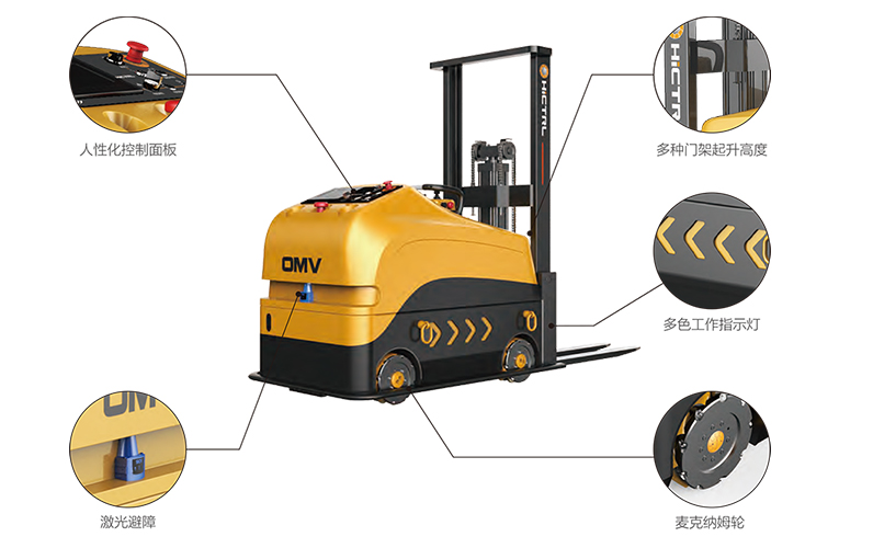 最新研发的多功能平衡重车,配备麦克纳姆轮技术,搭载自动导航系统、无线遥控等功能,可以根据不同的货物搭载专制属具,能在狭小的空间对物件进行搬运、堆垛、装配,广泛适用于工厂流水线零部件装配、搬运以及仓库堆垛,该车尺寸小,操作灵活,零回转半径,控制精度高。