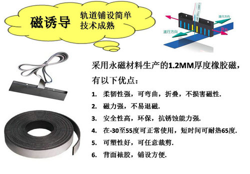 1. 导航磁条可与铁质材料地板连在一起,但不可埋入铁质地板,这会减少磁条的磁性。