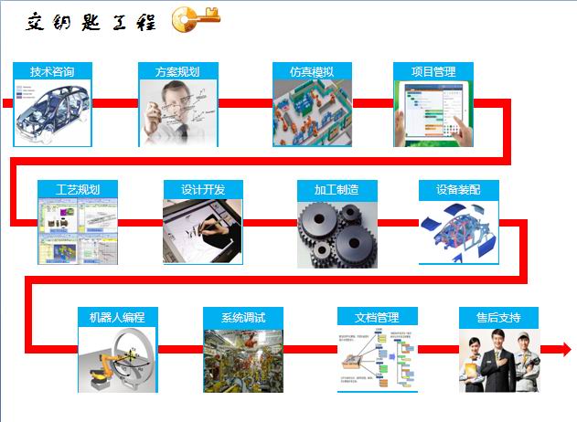 我们依托自主核心技术与专利产品,依靠丰富的车身车间技术应用经验,及领先的工艺规划仿真和机器人集成能力,根据各种生产纲领和生产率,可以为整车及零部件企业进行定制服务。提供焊装线的规划、工艺仿真与验证、设计、制造直至安装调试的整套柔性解决方案。并通过概念设计、工艺开发、投产和维护等方面为客户提供支持。