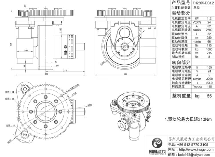 凤凰动力 FH250S/DC1.5KW/AGV驱动舵轮总成系统